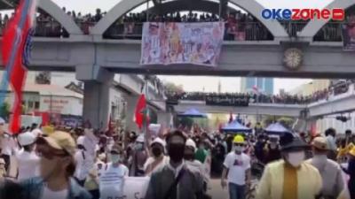 Massa Protes Tolak Kudeta yang Dilakukan Junta Militer Myanmar