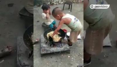 Viral Video Bocah Masak Nasi Goreng Sendiri untuk Adik