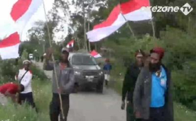 Warga Papua Pasang Ribuan Bendera Merah Putih di Jalan Sepanjang 15 Kilometer