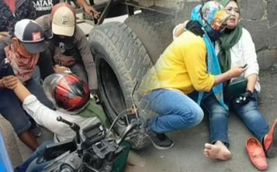 Detik-Detik Evakuasi Ibu-ibu Terjepit Dua Truk