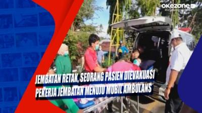 Jembatan Retak, Seorang Pasien Dievakuasi Pekerja Jembatan Menuju Mobil Ambulans