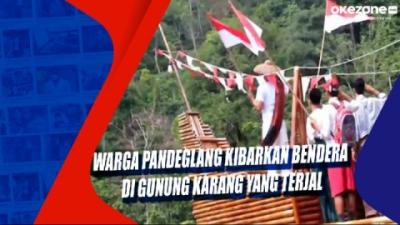 Warga Pandeglang Kibarkan Bendera di Gunung Karang yang Terjal