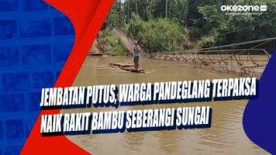 Jembatan Putus, Warga Pandeglang Terpaksa Naik Rakit Bambu Seberangi Sungai