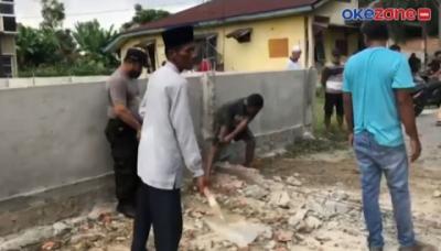 Tutup Akses Jalan, Tembok Setinggi 2 Meter Dirobohkan di Pekanbaru