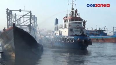 Kapal Nelayan Terbakar di Dermaga Pelabuhan Muara Baru