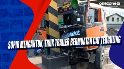 Sopir Mengantuk, Truk Trailer Bermuatan Cat Terguling