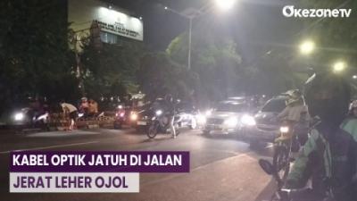 Leher Tersangkut Kabel Optik di Jalan Matraman, Pengemudi Ojol Terjatuh