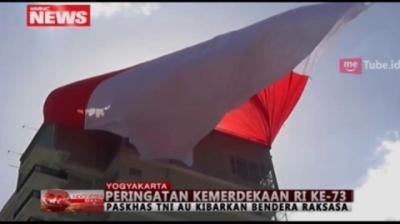 TNI AU Kibarkan Bendera Raksasa di Salah Satu Gedung Perbelanjaan Yogyakarta
