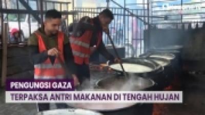 Pengungsi Gaza Terpaksa Antre Makanan di Tengah Hujan