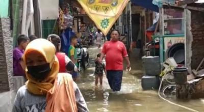 Banjir Rob Masih Genangi Perkampungan di Penjaringan