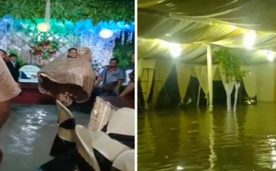 Viral Aksi Heroik Pengantin Pria Gendong Istri dari Pelaminan Akibat Banjir
