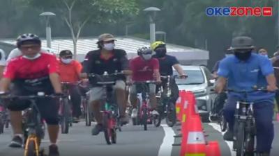 Pesepeda Sudah Boleh Melintasi Bundaran HI, Masih ada yang Tak Pakai Masker