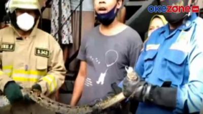 Petugas Damkar Jakarta Timur Evakuasi Ular Sanca di Selokan