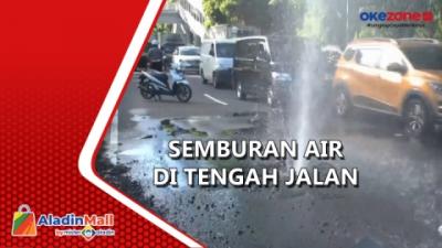 Semburan Air di Tengah Jalan Gatot Soebroto Membuat Lalu Lintas Tersendat