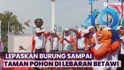 Momen Pj Gubernur DKI Jakarta Heru Budi Lepaskan Ratusan Burung Saat Perayaan Lebaran Betawi di Monas