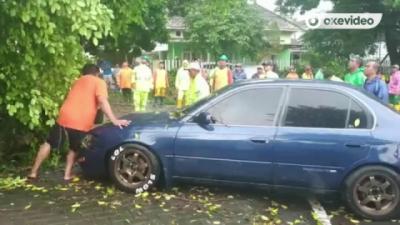 Hujan Deras Belasan Pohon di Beberapa Wilayah di Kota Malang Roboh Rusak Kendaraan
