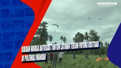 Ribuan Warga Antusias Tonton Latihan Terjun Payung Kostrad di Polewali Mandar