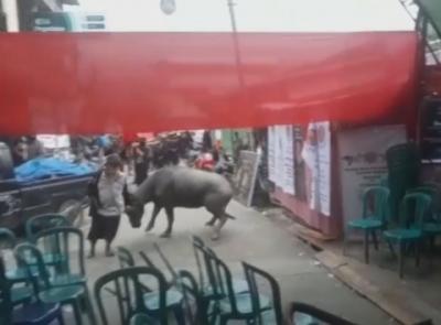 Kerbau Mengamuk di Rumah Duka, Rusak Mobil dan Lukai Warga