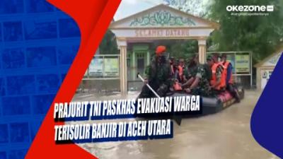 Prajurit TNI Paskhas Evakuasi Warga Terisolir Banjir di Aceh Utara