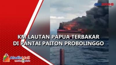 KM Lautan Papua Terbakar di Pantai Paiton Probolinggo