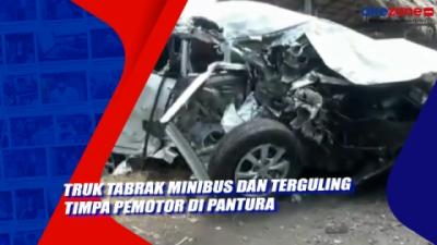Truk Tabrak Minibus dan Terguling Timpa Pemotor di Pantura
