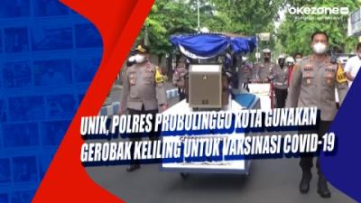 Unik, Polres Probolinggo Kota Gunakan Gerobak Keliling untuk Vaksinasi Covid-19