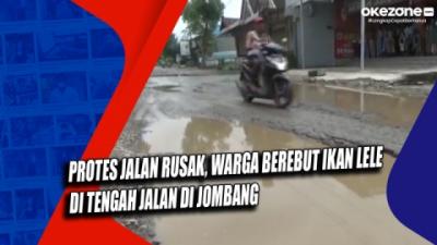 Protes Jalan Rusak, Warga Berebut Ikan Lele di Tengah Jalan di Jombang