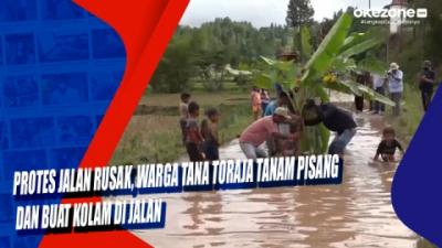 Protes Jalan Rusak, Warga Tana Toraja Tanam Pisang dan Buat Kolam di Jalan