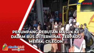 Penumpang Rebutan Masuk ke Dalam Bus di Terminal Terpadu Merak, Cilegon