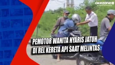 Pemotor Wanita Nyaris Jatuh di Rel Kereta Api saat Melintas