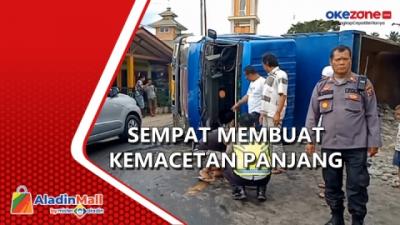Kelebihan Muatan, Truk Bermuatan Motor Baru Terguling di Salatiga
