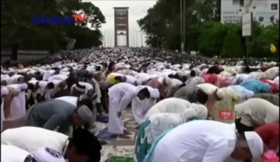 Jamaah Salat Ied Membludak Hingga ke Jembatan Ampera