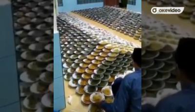 Susun Piring Cepat ala Santri, Netizen: Jorok, Kasihan yang Dapat Paling Bawah