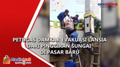 Petugas Damkar Evakuasi Lansia dari Pinggiran Sungai di Pasar Baru