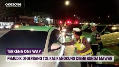Terkena One Way, Pemudik di Gerbang Tol Kalikangkung Diberi Bunga Mawar