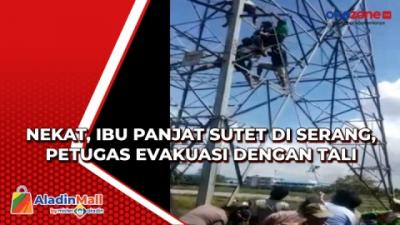 Nekat, Ibu Panjat SUTET di Serang, Petugas Evakuasi dengan Tali