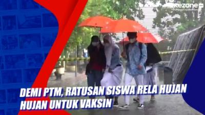 Demi PTM, Ratusan Siswa Rela Hujan-Hujan untuk Vaksin