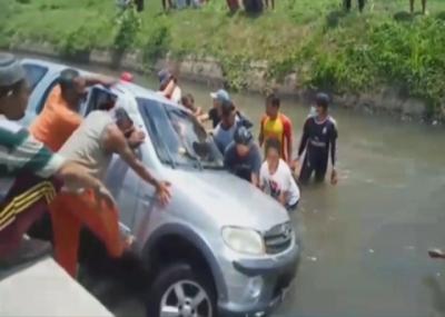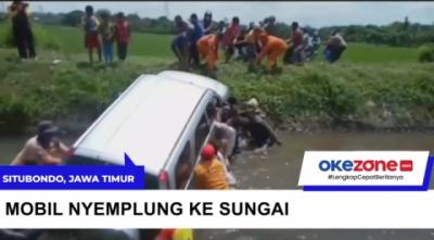 Sebuah Mobil Minibus Terjun ke Dalam Sungai di Situbondo