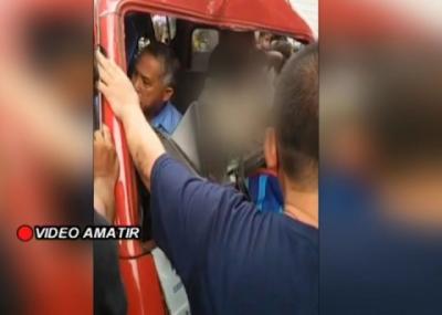 Sopir Mengantuk, Angkot Tabrak Pohon Besar di Cipayung