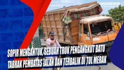 Sopir Mengantuk, Sebuah Truk Pengangkut Batu Tabrak Pembatas Jalan dan Terbalik di Tol Merak