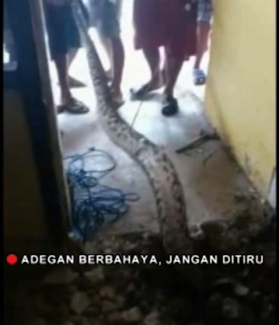Ular Piton Masuk Rumah Warga di Palembang