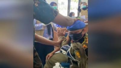 Takut Disuntik Vaksin Covid-19 Seorang Petugas Satpol PP Histeris