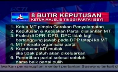 8 Butir Keputusan SBY untuk Partai Demokrat