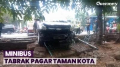 Tabrak Pagar Taman Kota, Minibus Terperosok hingga Rusak Parah