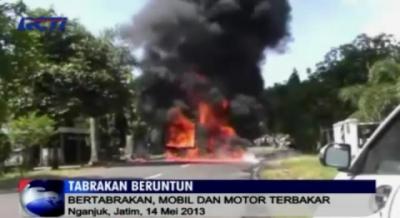 Tabrakan Beruntun, Mobil dan Motor Terbakar