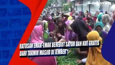 Ratusan Emak-Emak Berebut Sayur dan Kue Gratis dari Takmir Masjid di Jember