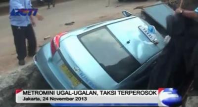 Hindari Metromini, Taksi Terperosok Galian Proyek