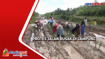 Protes Jalan Rusak, Emak-Emak di Lampung Tanam Padi di Tengah Jalan