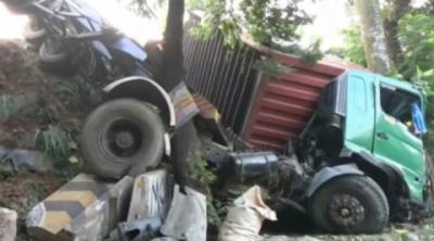 Sopir Mengantuk, Truk Jatuh dari Ketinggian 5 Meter