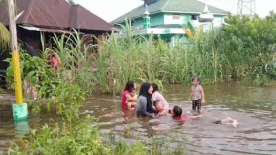 Ketika Banjir Jadi Lokasi Bermain Anak-Anak di Tanjung Balai